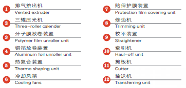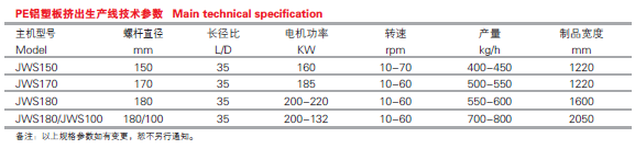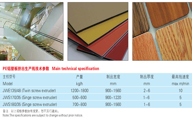 同時本司也提供傳統的鋁塑板生產線,產量500-800kg/h,線速度5m/min,可以生產寬度900-1560mm,鋁箔厚度