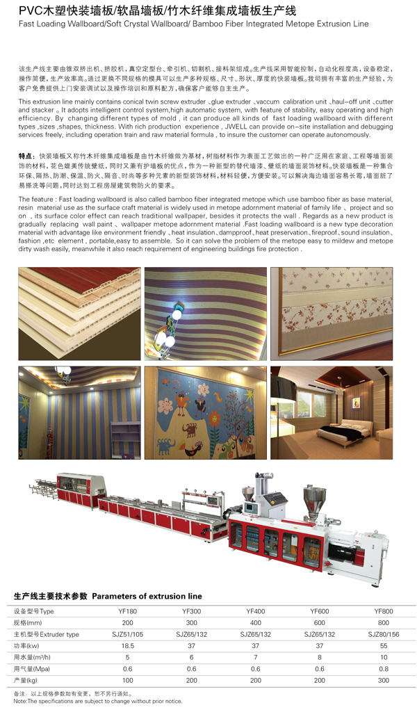PVC木塑快裝墻板/軟晶強板/竹木纖維集成墻板生產(chǎn)線