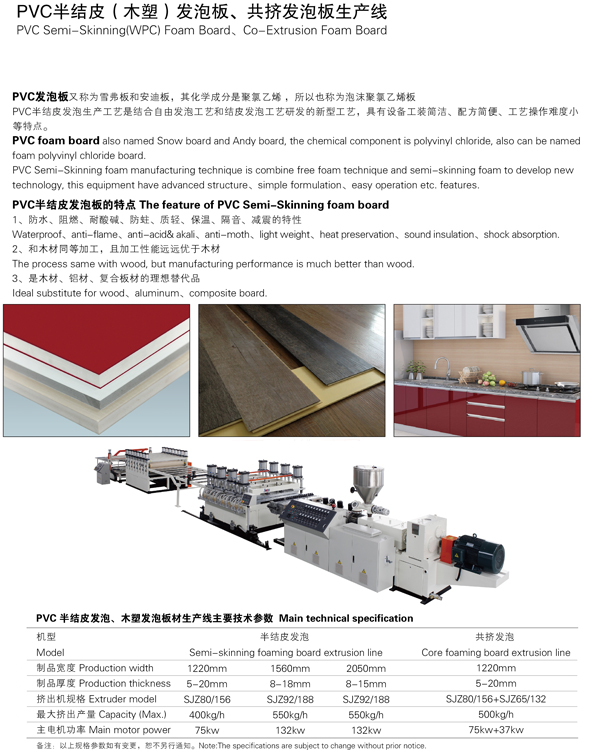 PVC半結皮(木塑)發泡板、共擠發泡板生產線