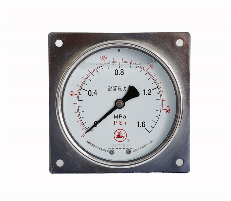軸向前邊耐震壓力表是耐震壓力表系列中常用的一種,安裝時利用耐震壓力表自帶的安裝邊(盤)固定在設備面板上,方便操作人員隨時觀察壓力變化。軸向前邊耐震壓力表表殼為全密閉型結構,內部填充阻尼液(一般為甘油或者硅油)并加裝緩沖機構,減輕環境劇烈振動及介質脈沖對儀表示值的影響,耐震型壓力表指示穩定清晰。廣泛應用于液壓機械、石油、化工、冶金、礦山機械、電力設備等部門,測量對銅和銅合金無腐蝕性介質的壓力。使用壽命長,是普通壓力表的替代產品,防護等級IP65。